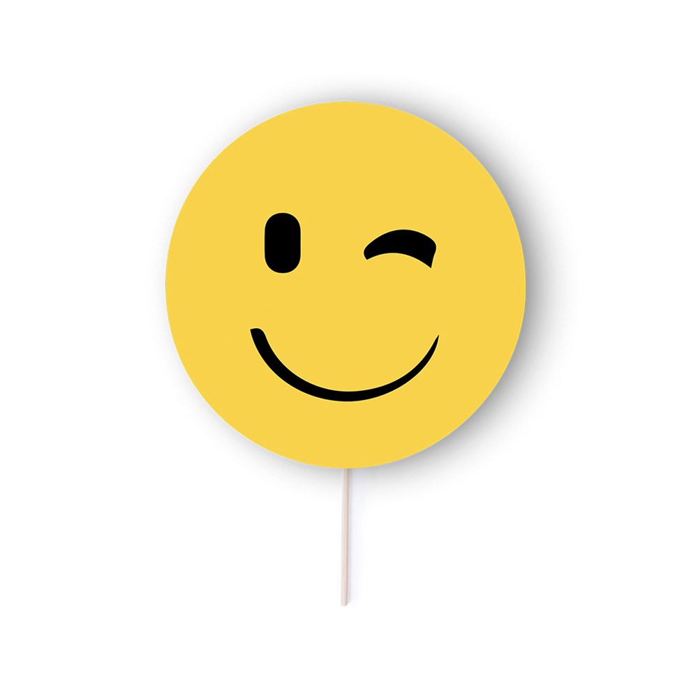 Selfie Pai Pai in lustigen Emoji-Designs und in einer auffälligen gelben Farbe. Aus hochwertigem Papier, mit Holzgriff. Erhältlich in den Designs Herz, Sonnenbrille, Augenzwinkern und Lächeln.