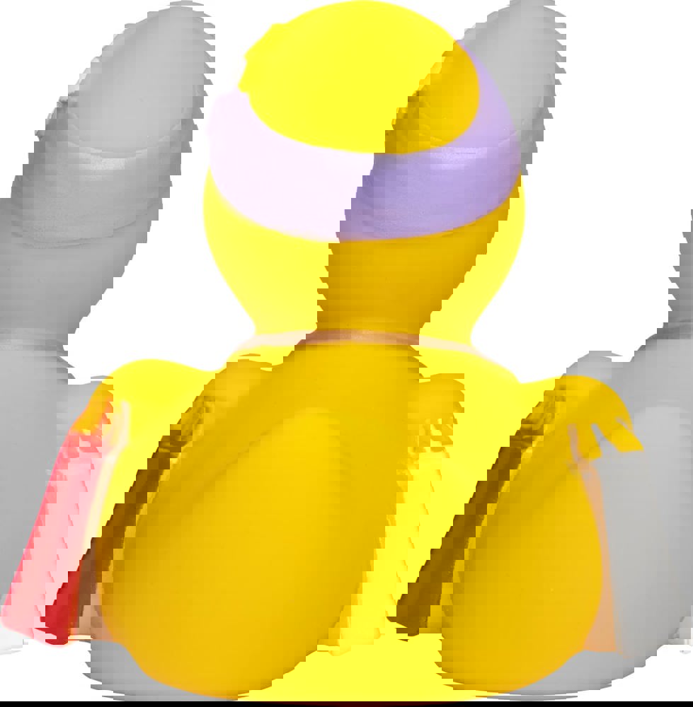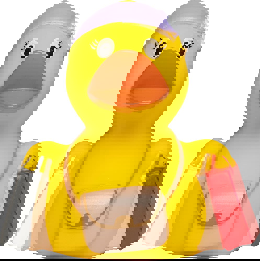 Schwer bepackt mit strahlenden Augen kommt das niedliche Entlein von einem erfolgreichen Stadtbummel nach Hause. Nach ausgiebigem Auspacken, Betrachten und Freuen steht einem entspannenden Schaumbad nichts mehr im Weg.