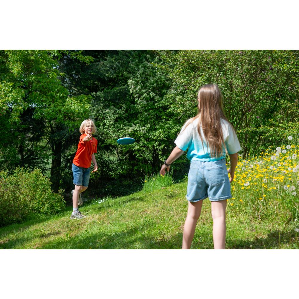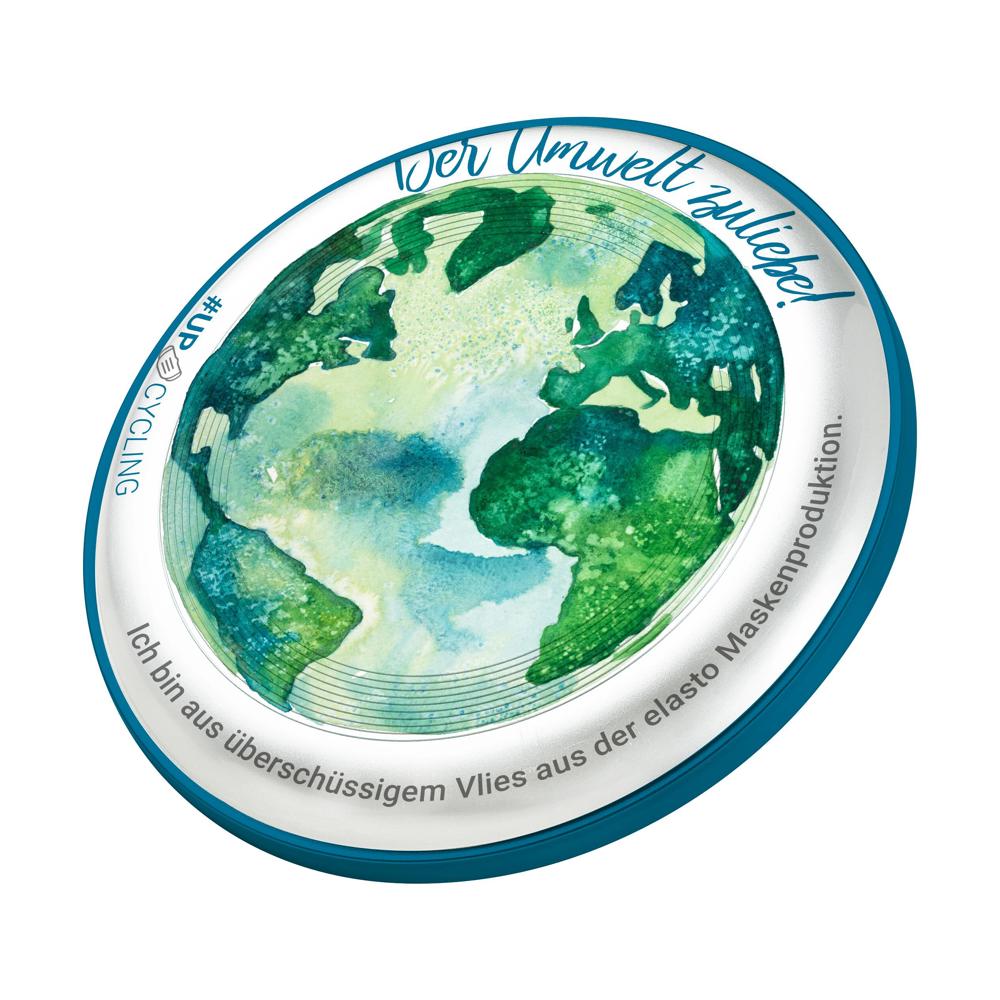 Der Umwelt zuliebe. Die Wurfscheibe wird mit recyceltem Polypropylen, welches bei der elastocare Maskenproduktion übrig bleibt, hergestellt. Der Vliesstoff, der beim ausstanzen der Masken übrig bleibt, wird hierbei nicht entsorgt, sondern gesammelt, recycelt und dem Produktionskreislauf wieder zugeführt. Stapelbar und mit einer Ringstruktur auf der Oberfläche.
