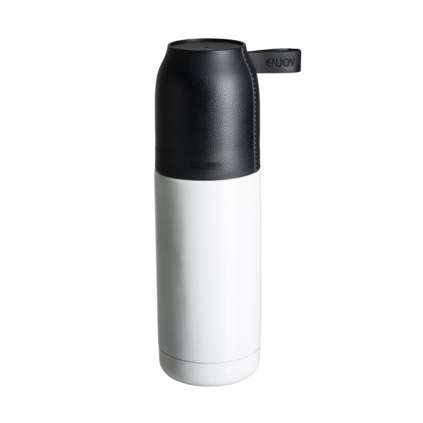 Die trendige Isolierflasche mit aufgeschraubtem Kunststofftrinkbecher und Silikonschlaufe hat einen praktischen Kippschalter zum Öffnen und Schließen der Flasche. Doppelwandig und vakuumisoliert. Füllmenge: 350 ml