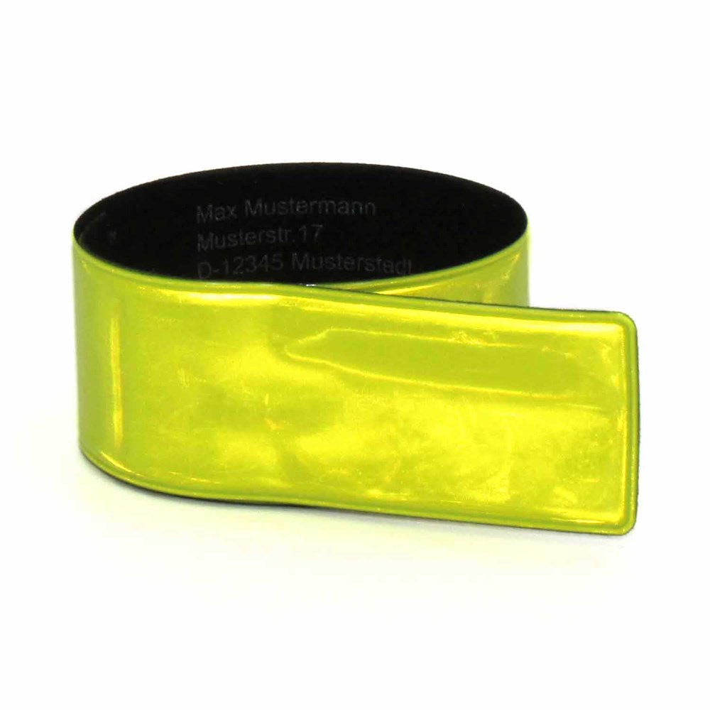 Unsere Schnappbänder QUALITY werden nach EN 17353 produziert. Die Glodian Folie in weiß oder gelb ist direkt oder unter der Folie bedruckbar. Rückseite mit schwarzem Velourstoff überzogen. Ein idealer Begleiter in der Dunkelheit. Vielseitig einsetzbar: in der Freizeit, beim Joggen oder beim Spazierengehen.