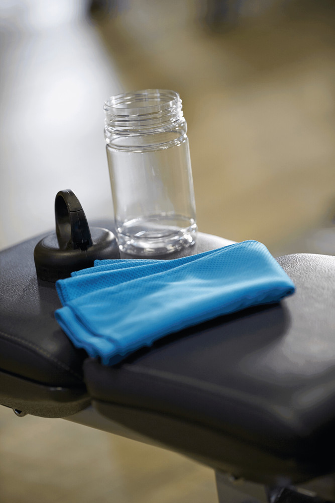 Kühlhandtuch CHILLING: in transparenter Dose, integrierter Sonnenschutzfaktor, für einen lang anhaltenden Kühleffekt Handtuch mit Wasser befeuchten und schleudern oder Wasser zur Dose hinzugeben und gut schütteln, Deckel mit Karabinerhaken (der Karabiner ist NICHT als Sicherung beim Klettern geeignet) - ideal für Fitness und Sportaktivitäten