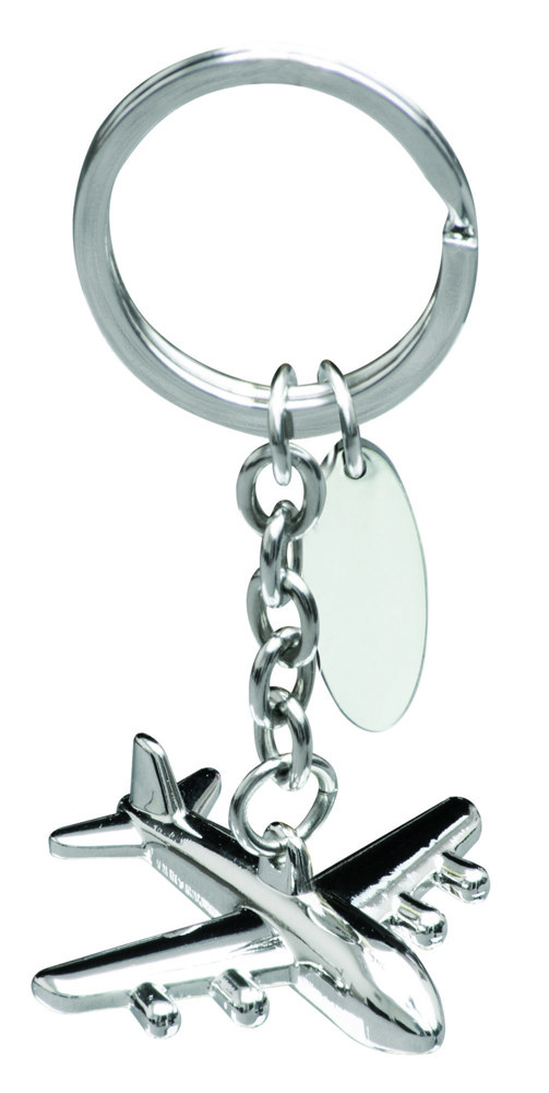 Schlüsselanhänger - Miniflugzeug. Sehr genaue Wiederspiegelung eines richtigen Flugzeugs. Chrom-Metall. Gepackt in eine elegante schwarze Box. Das Logo wird auf dem Metallplättchen graviert, das später mit dem Flugzeug am Schlüsselring befestigt wird.