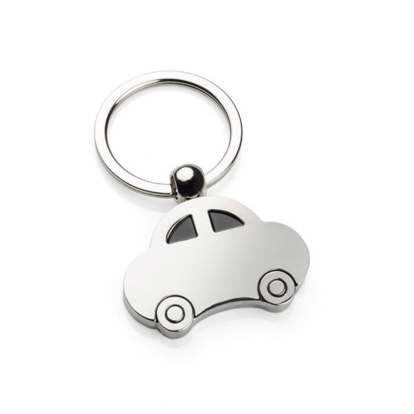 Schlüsselanhänger in Form eines Wagens. Chrom-Metall. Beideseitig. mehr