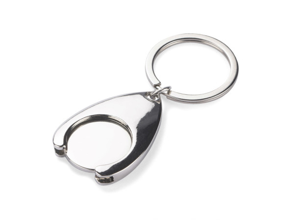 Trolley Münzhalter Schlüsselanhänger mit 1EUR großer Kunststoff Münze. Chrom-Metall. Sehr nützlich. Gepackt in eine schwarze Box.
