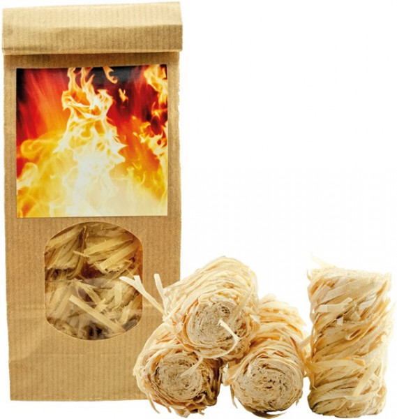Diese sicheren und umweltfreundlichen Anzündhilfen aus gewachster Holzwolle erleichtern das Anzünden des Kamins oder auch des Grills. Das Standardmotiv des Etiketts bietet ausreichend Platz für Ihre Werbeanbringung. Eine individuelle Gestaltung ist ebenfalls ab 250 Stück möglich.