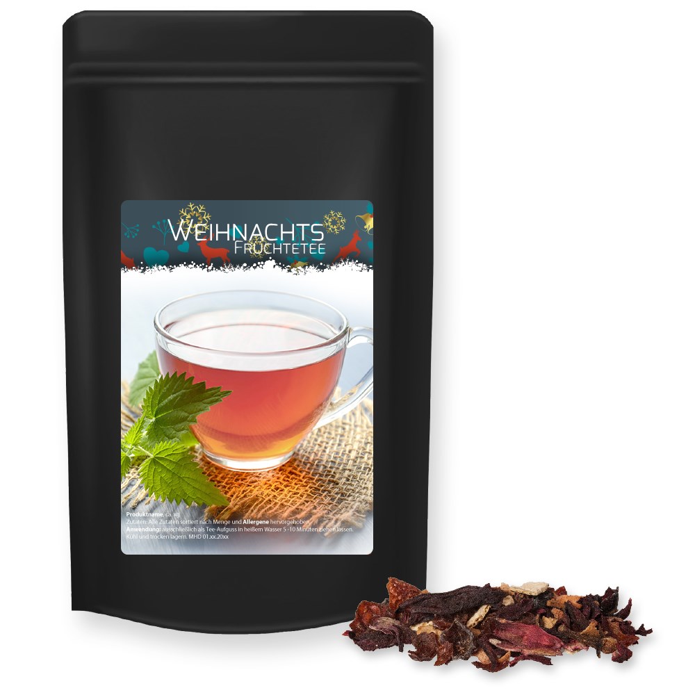 Weihnachts Früchtetee, ca. 55g, Standbeutel Midi schwarz