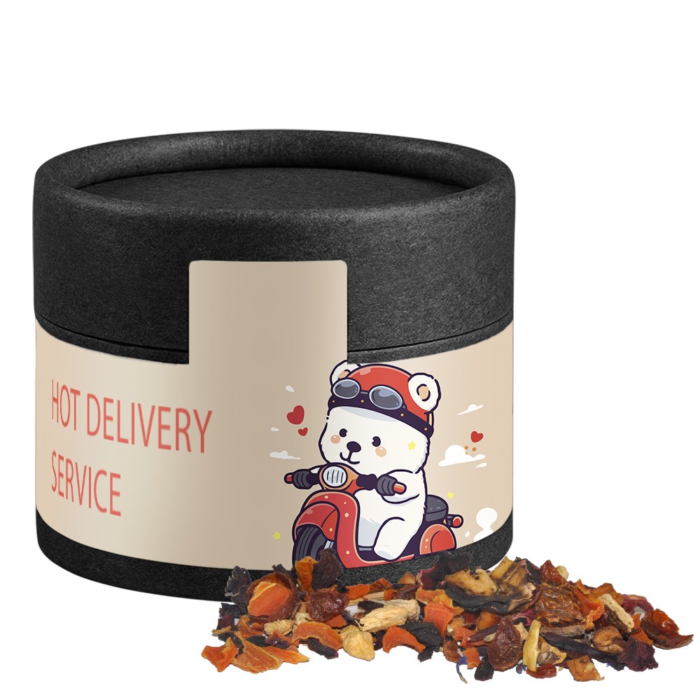 Kaminfeuer Tee, ca. 20g, Kraftpapierdose Mini schwarz