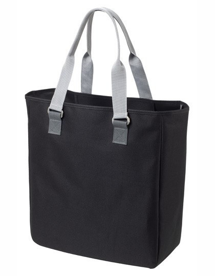 Formschöner, großer Shopper mit dekorativen Metallschnallen und zweifarbigen Gurten | Hauptfach mit hängendem Reißverschluss-Organizer | 600D Polyester | Lieferung ohne Inhalt/Deko | Volumen: ca. 32 Liter