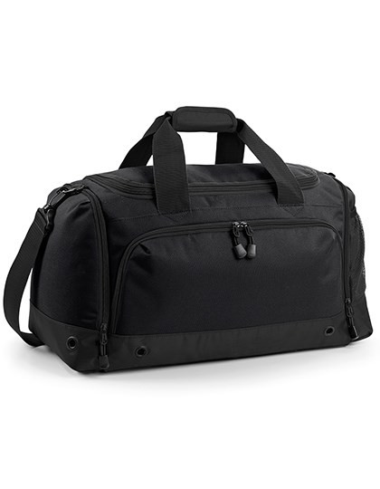 600D/420D Polyester-Mischung | Abnehmbarer, verstellbarer Schultergurt mit Polster | Schuh-Tunnel | Nass-Tasche | Innentasche für Wertsachen | Außen angebrachte Netztasche | Endtasche mit Reißverschluss | Schützende Standfüße | Belüftungsöffnungen mit Ösen aus echtem Metall | Gepolsterter Handgriff | Volumen: ca. 30 Liter | Lieferung ohne Inhalt/Deko