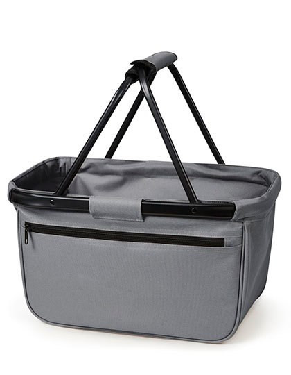Formschöner Einkaufskorb mit Alurahmen und Reißverschluss-Vortasche | Klappbar | 600d Polyester | Lieferung ohne Inhalt/Deko | Volumen: ca. 20 Liter