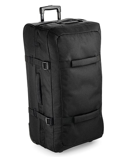 600D Polyester | Abreißetikett | Praktisches Design mit zwei Fächern für leichteres Einpacken | Abschließbarer Reißverschluss am Hauptfach | Fenster für Identifikation von außen | Abnehmbare Rip-Strip™-Griffwicklung für einfaches Dekorieren | Doppelte Kompressionsgurte | Hochstabiler, einziehbarer Doppelgriff | Strapazierfähige Haltegriffe vorne | Gepolsterte obere und seitliche Griffe | Strapazierfähige integrierte Skate-Räder | Kann mit BG485 Escape Handle Wrap weiter personalisiert werden | Lieferung ohne Inhalt/Deko | Kapazität: 100 Liter