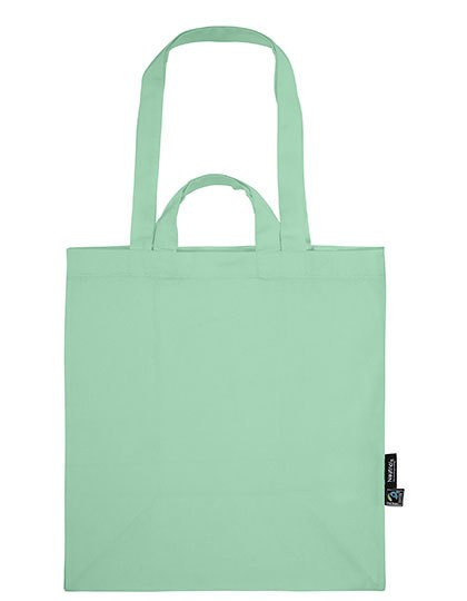 Fairtrade-zertifizierte Baumwolle | Zertifizierte, gekämmte Bio-Baumwolle | Köperbindung | Lange und kurze Griffe | Neutral- und Fairtrade-Label an der Seite | 20 cm großer Einsatz an Seite und Unterseite | Lieferung ohne Inhalt/Deko