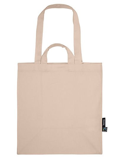 Fairtrade-zertifizierte Baumwolle | Zertifizierte, gekämmte Bio-Baumwolle | Köperbindung | Lange und kurze Griffe | Neutral- und Fairtrade-Label an der Seite | 20 cm großer Einsatz an Seite und Unterseite | Lieferung ohne Inhalt/Deko