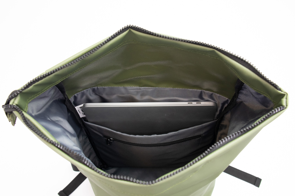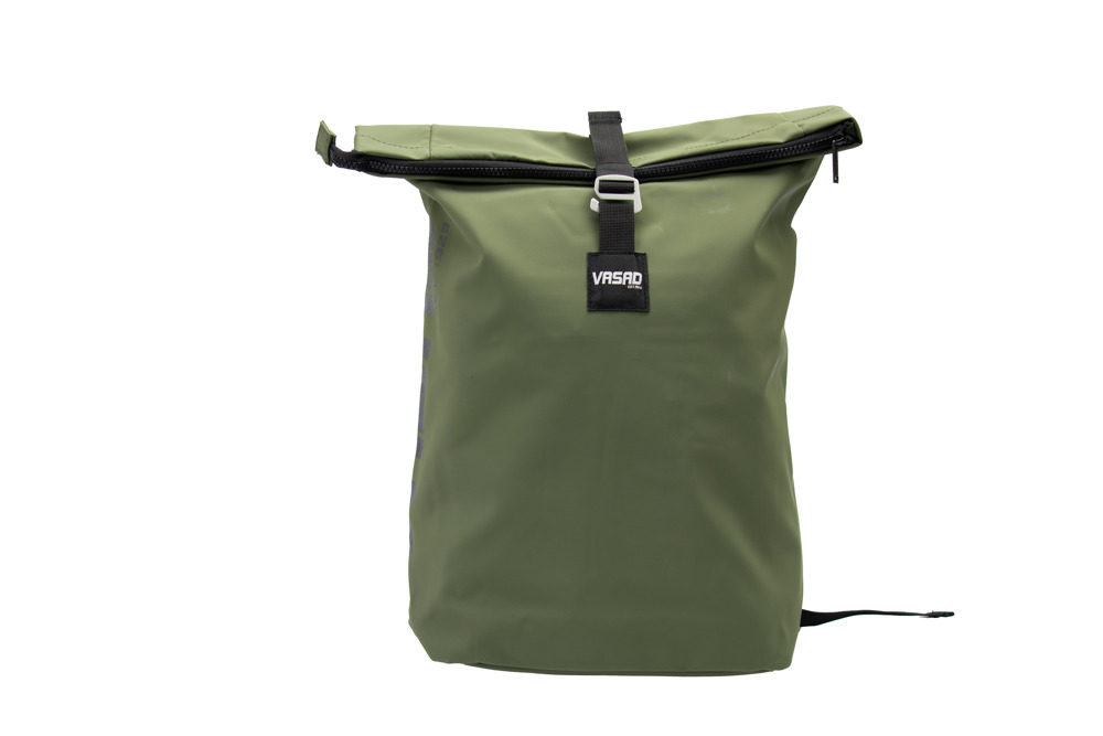 Ein moderner, robuster und praktischer Rucksack mit praktischem Rollverschluss. Das wasserdichte Material, der grobe Reißverschluss und die Metallschnalle sorgen für ein robustes Aussehen. Laptop oder Tablet können in der gepolsterten Hülle aufbewahrt werden. Der Futterstoff ist aus recycelten PET hergestellt. Der reflektierende VASAD-Druck macht Sie nachts sichtbar.