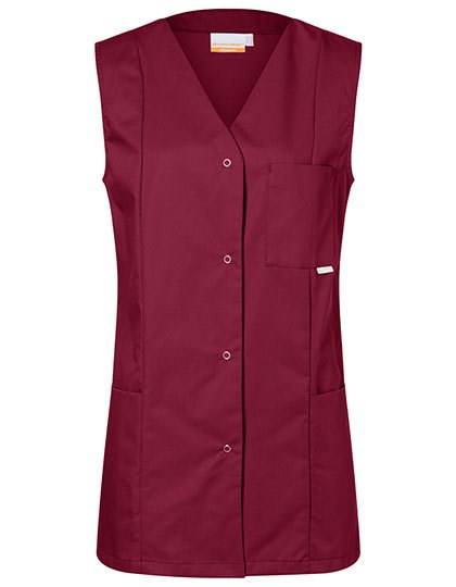 Köpergewebe, 215 g/m² | Hochveredelt, gekrumpft, waschecht, pflegeleicht | Damenkasack in lockerer Passform | Englische Nähte | V-Ausschnitt, ohne Ärmel | 2 versteckte Seitentaschen | 1 aufgesetzte Brusttasche links | 4 Druckknöpfe | Rückenlänge bei Größe 38 ca. 82 cm | Industriewäschetauglich | Bis 95°C waschbar