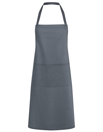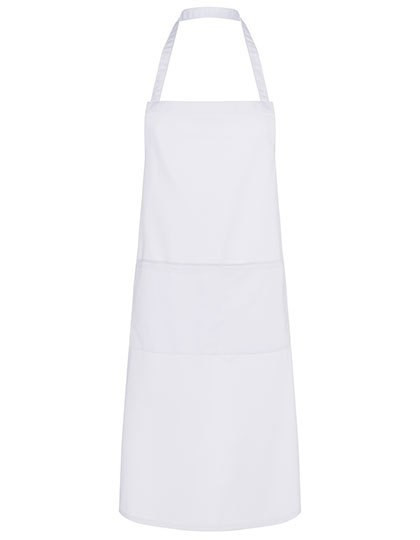 Köpergewebe, 215 g/m² | Hochveredelt, gekrumpft, waschecht, pflegeleicht | Latzschürze mit Bändern aus Schürzenstoff, mit Nahtsicherung | Länge des Nackenbands: ca. 60 cm | Aufgesetzte Tasche mit 2 Fächern, 40 x 20 cm | Industriewäschetauglich | Bis 95°C waschbar