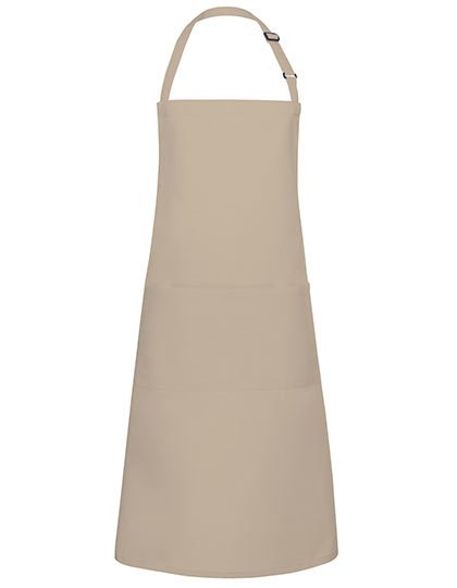 Köpergewebe, 215 g/m² | Latzschürze mit Bändern aus Schürzenstoff, mit Nahtsicherung | Latzband mit Schnalle zum stufenlosen Einstellen der Länge bis 70 cm | Aufgesetzte Tasche mit 2 Fächern (40 x 20 cm) | Waschbar bis 60 °C