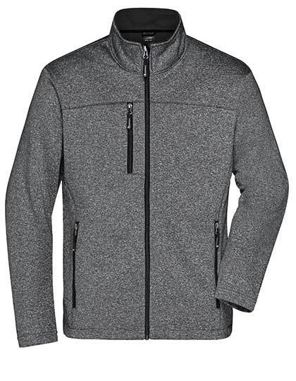 Softshelljacke in Melange-Optik | Angenehmes, weiches, 2-lagiges Softshellmaterial | Fleece-Innenseite in Kontrastfarbe | Durchgehend hinterlegter Front-Reißverschluss mit Kinnschutz | Stehkragen | Zwei seitliche Taschen und eine Brusttasche mit Reißverschluss | Leicht taillliert