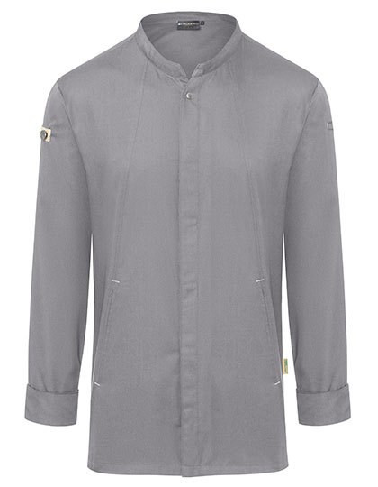 Vorderseite: Köpergewebe, 150 g/m² | Rückseite: Jersey-Piqué, 170 g/m², atmungsaktiv, feuchtigkeitsregulierend | Innovative nachhaltige Kochjacke, die urbanen Style mit natürlichem Flair verbindet | Der Artikel enthält 72% recyceltes Polyester und wurde umweltverträglich und sozial verantwortlich produziert | Leicht tailliert geschnitten | Rückeneinsatz aus Jersey-Piqué sorgt für angenehme Belüftung und erhöhte Bewegungsfreiheit | mit Druckknöpfen zum schnellen Öffnen und Schließen | Ärmelmanschetten mit Druckknöpfen | Vorderteil mit Reißverschlußtaschen und Leistentasche am linken Ärmel | stylische Applikationen aus Kontrastbändern an den Ärmeln und im Nacken für eine urbane Optik | Grüner Knopf zertifiziert, www.g-k.eu/karlowsky
