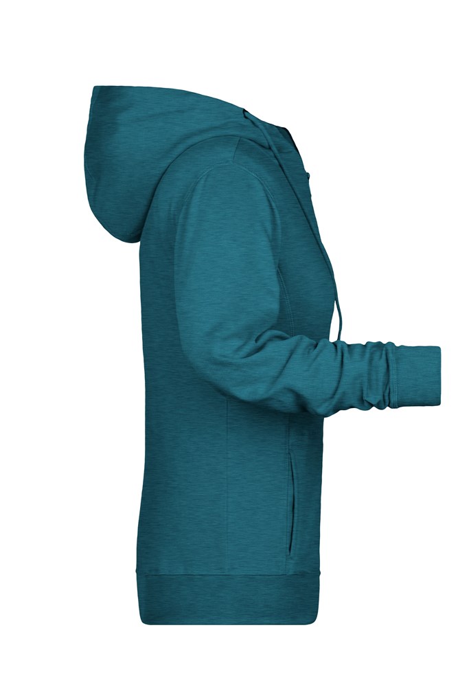 Hochwertige French-Terry Qualität Materialmischung aus gekämmter, ringgesponnener BIO-Baumwolle und recyceltem Polyester Doppellagige Kapuze mit Kordelzug Seitliche Teilungsnähte im Vorderteil Kängurutasche Bündchen mit Elasthan YKK Reißverschluss Tear off!® - Label 8025: leicht tailliert 8026K: ohne Kordel 1/2 Oberweite: 48 cm Länge ab Schulter: 62 cm Ärmel Länge: 61 cm OEKO-TEX® Standard 100 (15.0.70467) Bio Baumwolle OCS Standard blended RCS blended Kapuze Tear off!® Label YKK - Reißverschluss