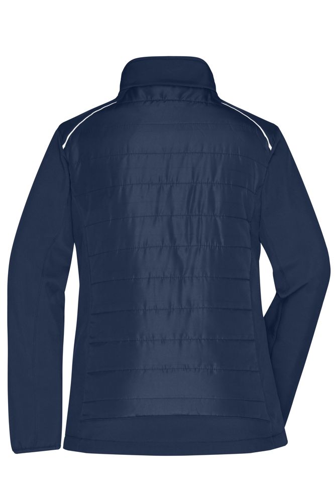 Pflegeleichtes 2-Lagen Softshellmaterial kombiniert mit gesteppten Einsätzen im Vorder- und Rückenteil