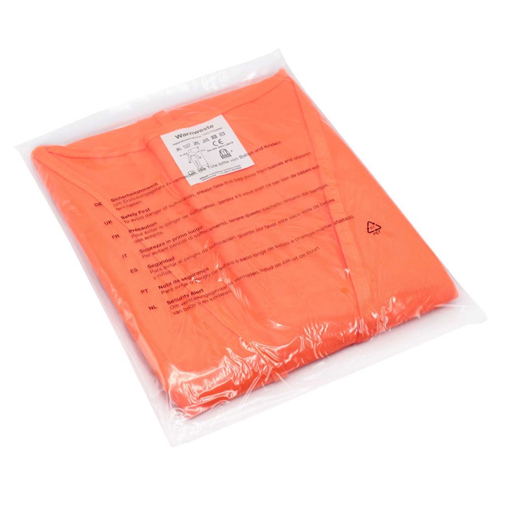Unsere Warnweste Premium orange ist aus 100% Polyester, wird nach EN ISO 20471 produziert und ist TÜV-Rheinland geprüft. Mit Anleitung einzeln im wiederverschließbaren Polybeutel verpackt. Durch die beiden Klettverschlüsse ist die Größe variabel einstellbar. Mit zwei reflektierenden Streifen, perfekt vernähte Qualität und Einleger in sieben Sprachen mit den gesetzlichen Pflichtangaben. Mit dem Standardmotiv 'Sicherheitsabstand' auf der Rückseite 1farbig schwarz bedruckt. Ein zusätzlicher Druck auf der Vorderseite ist möglich. Gern erstellen wir Ihnen dazu ein Angebot.