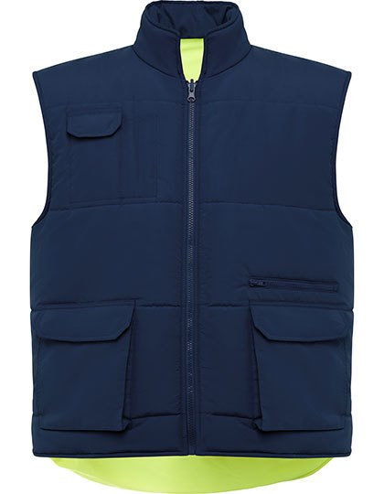 Außenmaterial: 100% Polyester, Taft; Polsterung: 100% Polyester; Fluorgewebe: 100% Single-Jersey-Polyester, 450 g/m² | Warnwendeweste mit mehreren Taschen und hohem Kragen | Frontreißverschluss mit zweiseitigem Puller | Rechte Außentasche für das Handy | Zwei plissierte Fronttaschen mit Seitenschlitzen | Zwei Stifttaschen | Reißverschlusstasche | Windstopper in den Bündchen | Mit verlängertem Rückenteil | Elastische Weitenregulierung | Zwei horizontale Warnstreifen | EU-zertifiziert nach EN ISO 13688:2013 und EN ISO 20471:2013/A1:2016 Klasse I | Dies ist ein Artikel zur Persönlichen Schutzausrüstung (PSA). Gemäß EU-Verordnung 2016/425 über persönliche Schutzausrüstung ist eine EU-Konformitätserklärung seitens des Herstellers Pflicht. Diese stellen wir Ihnen auf Anfrage gerne zur Verfügung.