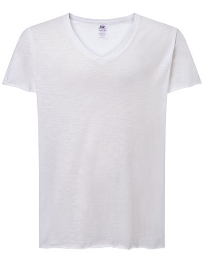 Kurzarm | Slub | 1x1-Ripp am V-Ausschnitt | Kragenband | Ausgestellte Form | Ärmel und Saum offen