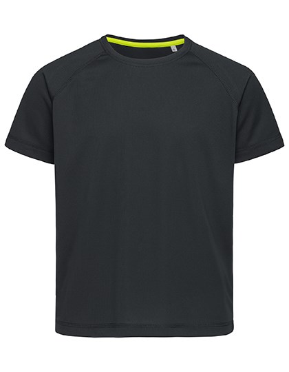 Bird-Eyelet Mesh | Dehnbares Material | Raglan-Ärmel | Dekorative Flatlock-Nähte | Kontrastfarbenes Nackenband (Cyber Yellow) | Pflegeetikett in der Seitennaht | Kleines Größenetikett im Nacken | Seitennähte