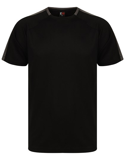 Single Jersey | Unisex | Eigenmaterial-Ärmeleinsätze in Kontrastfarbe | Sportliche Passform | Die ableitende Oberfläche sorgt für Feuchtigkeitsregulierung | Schnell trocknend und atmungsaktiv | 2-teiliger Kragen aus Eigenmaterial in Kontrastfarbe | Raglan-Schulter | Abreißetikett