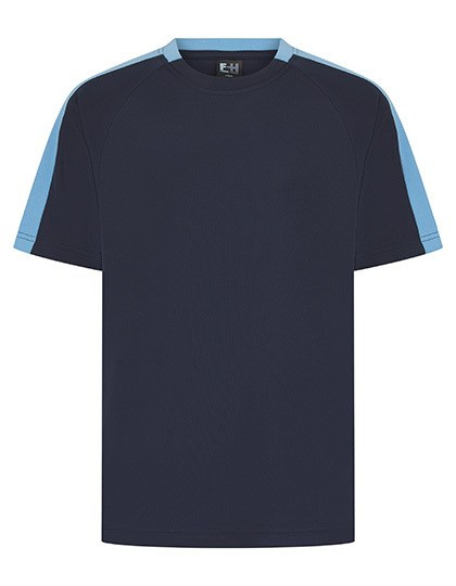Single Jersey | Unisex | Eigenmaterial-Ärmeleinsätze in Kontrastfarbe | Sportliche Passform | Die ableitende Oberfläche sorgt für Feuchtigkeitsregulierung | Schnell trocknend und atmungsaktiv | 2-teiliger Kragen aus Eigenmaterial in Kontrastfarbe | Raglan-Schulter | Abreißetikett