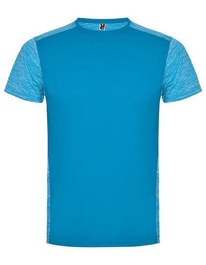Vorderseite: 100% bird's eye Polyester, Rückseite: 100% Polyester Space Dye, 135 g/m² | Funktions-T-Shirt, kurzarm | Rundhals | Kombination von zwei Polyestergeweben an Rücken, Schultern und Ärmeln | Schnitt mit verlängertem Rücken | Schnelltrocknendes, atmungsaktives Gewebe | Herausreißbares Label | Funktionsmaterial