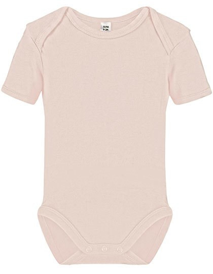 Kurzärmeliger Bodysuit | Envelope-Halsausschnitt | Weiche und elastische Interlock-Verarbeitung | Drei Qualitäts-Druckknöpfe | Unbedruckt waschbar bis 60 °C | Waschecht