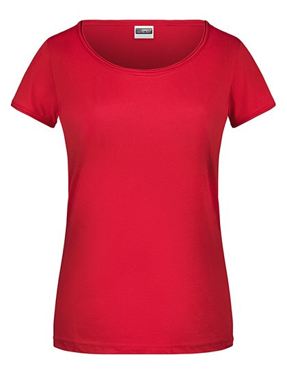 Gekämmte, ringgesponnene Bio-Baumwolle, Single Jersey | Halsferner Rundhalsausschnitt und Ärmel mit Rollsaum | Tear off!® - Label | Leicht taillliert