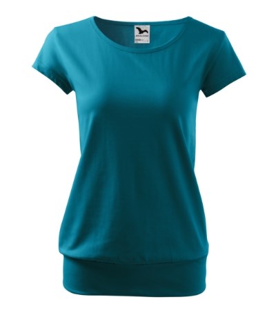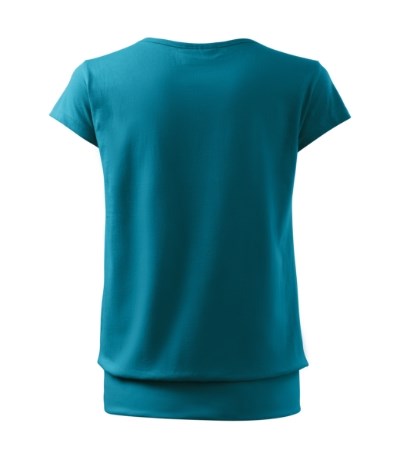 fließender Schnitt mit Seitennähten, breiter unterer Saum in Materialfarbe, Kragen mit Materialfarbe eingesäumt, Schulternähte verstärkt mit einem Band, Ärmel der kürzeren Länge, Silikonbearbeitung, Farbe 39 wird nicht mehr produziert finden Sie beim Produkt X20 im OUTLET