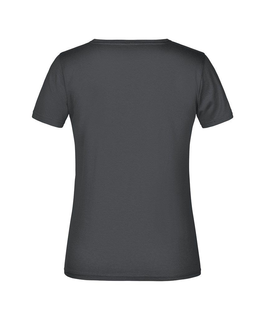 Single Jersey, Rundhalsausschnitt, Bündchen mit Elasthan Tear off!® - Label JN746: Leicht tailliert mit Seitennaht JN797: ohne Seitennaht 1/2 Oberweite: 39 cm 1/2 Taillenweite: 38 cm 1/2 Saumweite: 42 cm Länge ab Schulter: 61 cm Ärmel Länge: 15 cm OEKO-TEX® Standard 100 (15.0.70467) Baumwolle Rundhals Tear off!® Label